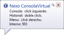 El Menú contiene distintas opciones (Configuración, Agenda, Historial, Versión,...) que permiten realizar operaciones, en forma directa, o visualizar estados de las líneas, registros de llamadas y parámetros de configuración. Cuando la consola no está visible, la opción Restaurar permite activar el panel principal para ver la actividad en el sistema de comunicaciones: