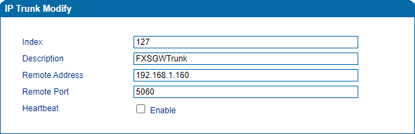 Conexionado El diagrama esquemático de conexionado, de un FXS Gateway, a una red LAN, donde también pueden encontrarse conectados otros equipos (teléfonos IP, por ejemplo), es el siguiente: ![]() El FXS Gateway permite incorporar, al Sistema VoIP, las prestaciones de un número mayor de dispositivos analógicos (adicionales a los que permiten los puertos analógicos FXS, de un equipo IP PBX híbrido). Entre los dispositivos que permite integrar, se encuentran los teléfonos analógicos convencionales, los equipos de FAX y las terminales POS, o la interconexión con una central PBX analógica pre-existente en el sistema de comunicaciones. Ingreso a la interfase web El gateway, según el modelo, puede contar con uno o dos tipos de interfases de red: LAN y WAN. De acuerdo al entorno de red, donde se instalará el equipo, se determina que interfase se utilizará. Para lograr el acceso a su interfase web (Web Management System), se conecta el equipo a la red local, a través de su puerto LAN. Desde una PC, conectada a la misma red local, se utiliza un navegador, para acceder a la configuración del gateway. La PC debe poder acceder a la dirección IP de fábrica (192.168.11.1) del equipo. Cuando las direcciones de LAN, se encuentran en la misma subred que la del equipo, es decir, tienen el formato 192.168.11.xxx, el acceso desde el navegador es directo. En caso contrario, cuando la PC se encuentra en otra subred, por ejemplo, 192.168.1.xxx, debe agregarse otra dirección IP, a la placa de red de la PC, para lograr el acceso al equipo IP PBX. Para información más detallada, consultar Configuración de subred. Desde el navegador, para ingresar a la interfase web (al menos, la primera vez), debe utilizarse la dirección IP de fábrica (192.168.11.1) del equipo. Luego, de acuerdo a los requerimientos de la instalación y de seguridad, puede modificarse esta dirección, desde la configuración de red. En el navegador, al acceder a la interfase web del gateway, se observa la siguiente imagen: ![]() Ingresando las credenciales: admin / admin, aparece la pantalla principal de la interfase web: ![]() Configuración Parámetros de red Si se desea incorporar el FXS Gateway, a una red local existente, sólo se utiliza la interfase LAN. Entonces, basado en los parámetros de la red, deben configurarse los parámetros de esta interfase LAN. Por ejemplo, si utilizamos una dirección estática para el gateway, tal como: 192.168.1.161, porque deseamos integrarla a una red del tipo: 192.168.1.xxx/255.255.255.0, en la configuración de LAN del equipo, deberían cargarse los siguientes valores (Network > Local Network): ![]() Seleccionamos el modo de red Puente (Network Mode: Bridge) y en esta interfase definimos, la dirección IP del gateway (IP Address), la máscara de subred (Subnet Mask) correspondiente y la puerta de enlace por defecto (Default Gateway), junto con las direcciones de los servidores DNS primario (Primary DNS Server) y secundario (Secondary DNS Server). Servidor SIP Para establecer los parámetros del servidor SIP (SIP Server), en el cual se registrará el FXS gateway, debe ingresarse a la opción de menú: SIP Server. La configuración básica requiere la dirección IP (SIP Server) y el puerto (SIP Server Port) del servidor. En caso de no utilizarse el protocolo de transporte UDP, por defecto, para SIP, debe seleccionarse otra opción en el campo: SIP Transport Type y el puerto correspondiente, en la sección Local SIP Port. Las opciones disponibles son: UDP, TCP, TLS y Automatic. ![]() Puertos FXS Para realizar la configuración de los Puertos FXS, debe ingresarse a la opción: Port. Luego, utilizando el botón Add, pueden agregarse los puertos requeridos ingresando sus parámetros individuales, es decir, su identificación de cuenta SIP, en el campo SIP User ID, y sus credenciales de autenticación, cuando son necesarias, en los campos: Authenticate ID y Authenticate Password (no se aplican, para este caso, con Registration no habilitada, Enable no seleccionada). ![]() Cada puerto agregado, se incorpora a la lista que aparece en la pantalla principal de esta opción. En la siguiente imagen se observan 3 puertos agregados: 605, 606 y 612. Este ejemplo corresponde a la configuración de un grupo de 3 puertos en un FXS gateway. ![]() Grupo de puertos FXS Para realizar la configuración de un Grupo de puertos FXS, debe ingresarse a la opción: Call & Routing > Port Group. Luego, utilizando el botón Add, puede agregarse un grupo de puertos, de acuerdo a los requerimientos de la instalación. En la configuración del grupo se ingresan sus parámetros individuales, es decir, un nombre descriptivo, en el campo Description y Display Name, su identificación de cuenta SIP, en el campo SIP User ID (en este ejemplo: 600), y sus credenciales de autenticación, en los campos: Authenticate ID y Authenticate Password. ![]() Luego utilizando el botón Select Port for this Group, que se encuentra en el campo Port, se agregan los puertos que desean utilizarse. En la siguiente imagen se observan 3 puertos agregados: Port 0, Port 1 y Port 7. Este ejemplo corresponde a la configuración de 3 puertos de un FXS Gateway de 8 puertos. ![]() Una vez realizada la selección deseada, debe utilizarse el botón Save, en esta ventana, para grabar los cambios. Troncal IP en el gateway Para realizar la configuración del Troncal IP, debe ingresarse a la opción: Call & Routing > IP Trunk. Luego, utilizando el botón Add, puede agregarse un nuevo troncal a la lista, de acuerdo a los requerimientos de enrutamiento. En la configuración del Troncal IP, deben ingresarse los siguientes parámetros: un nombre descriptivo (FXSGWTrunk, en este ejemplo), en el campo Description, la dirección IP y el puerto correspondiente al Servicio VoIP (o al SIP Server). En este caso, son los datos correspondientes al proveedor del servicio Troncal IP (SIP Trunk), en los campos Remote Address y Remote Port. Adicionalmente, puede habilitars